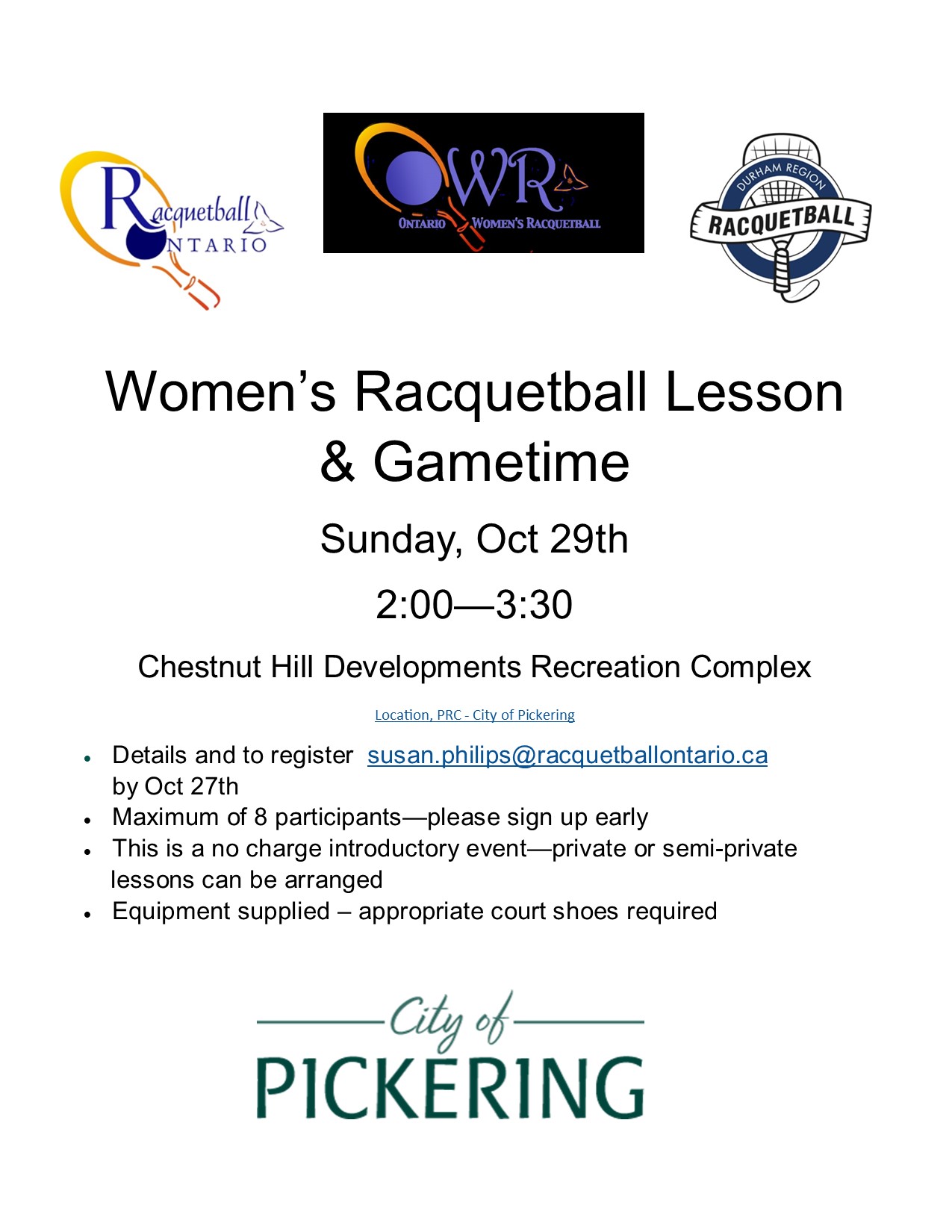 Women’s Racquetball Lesson & Gametime